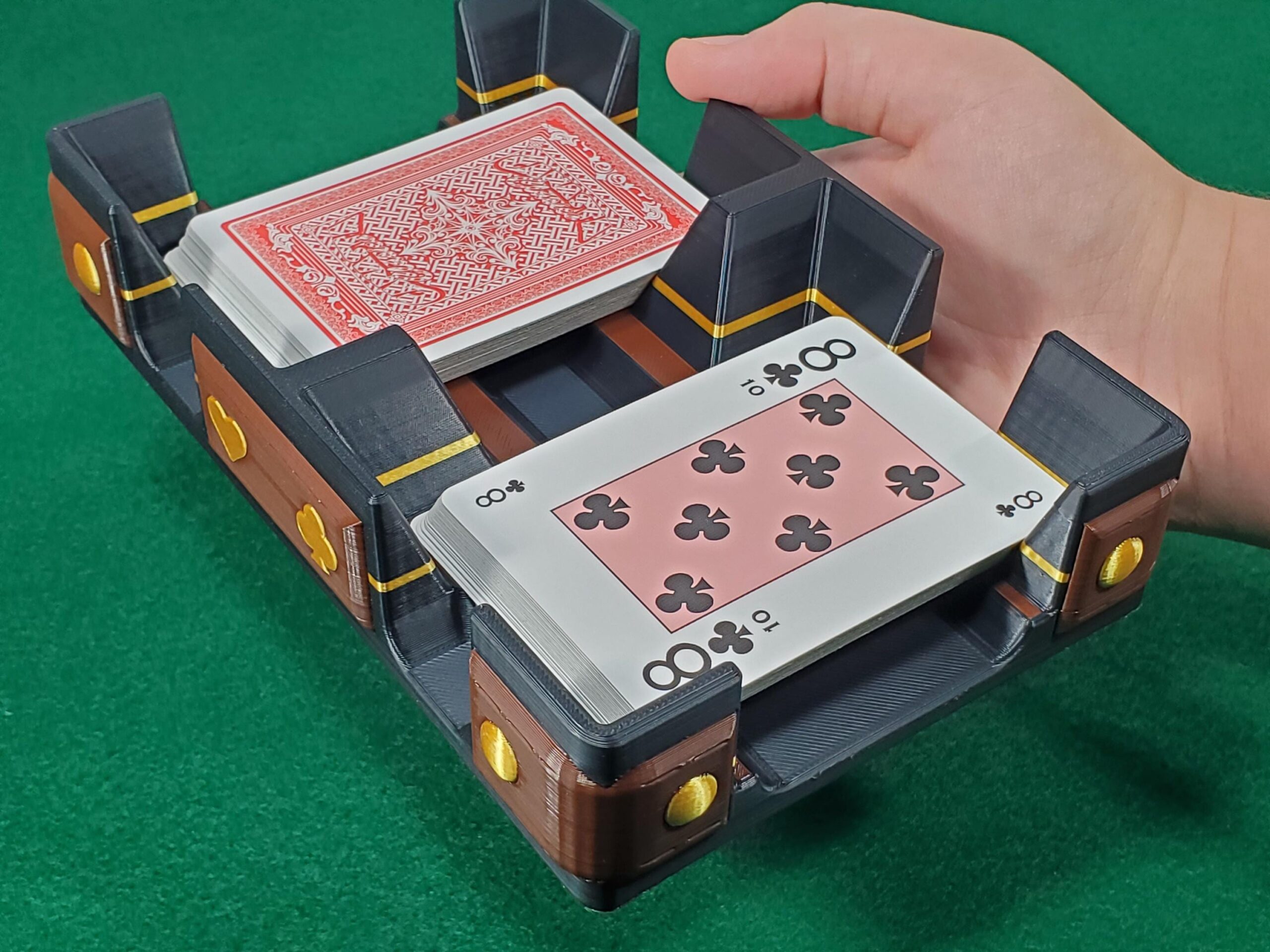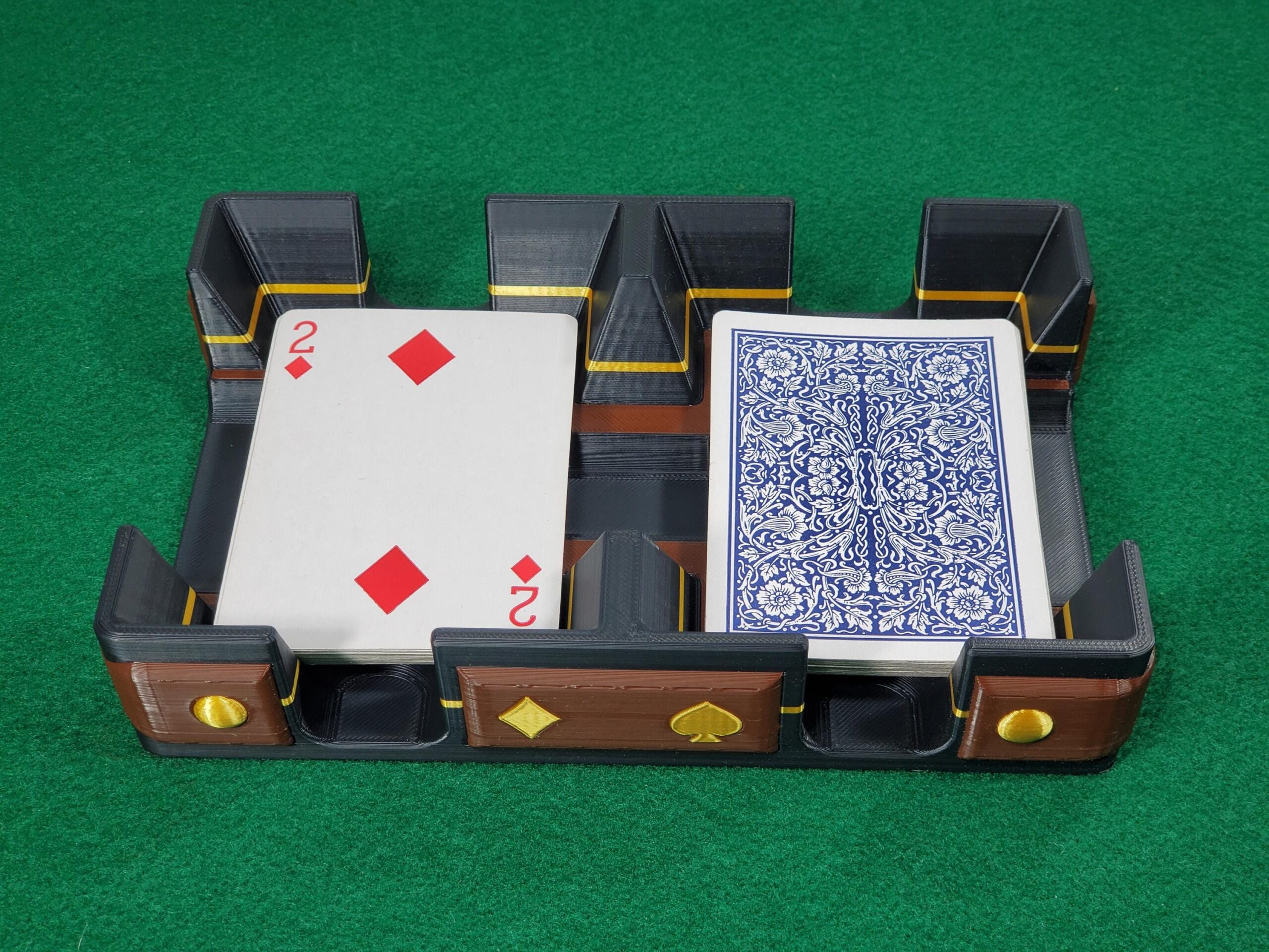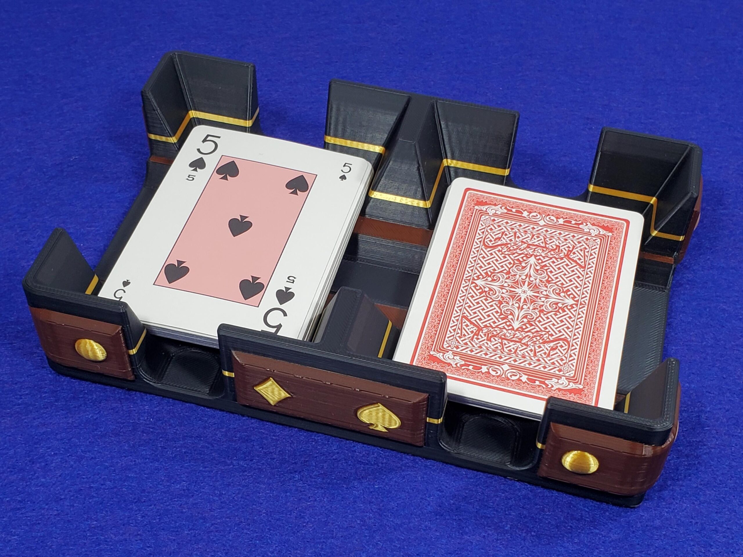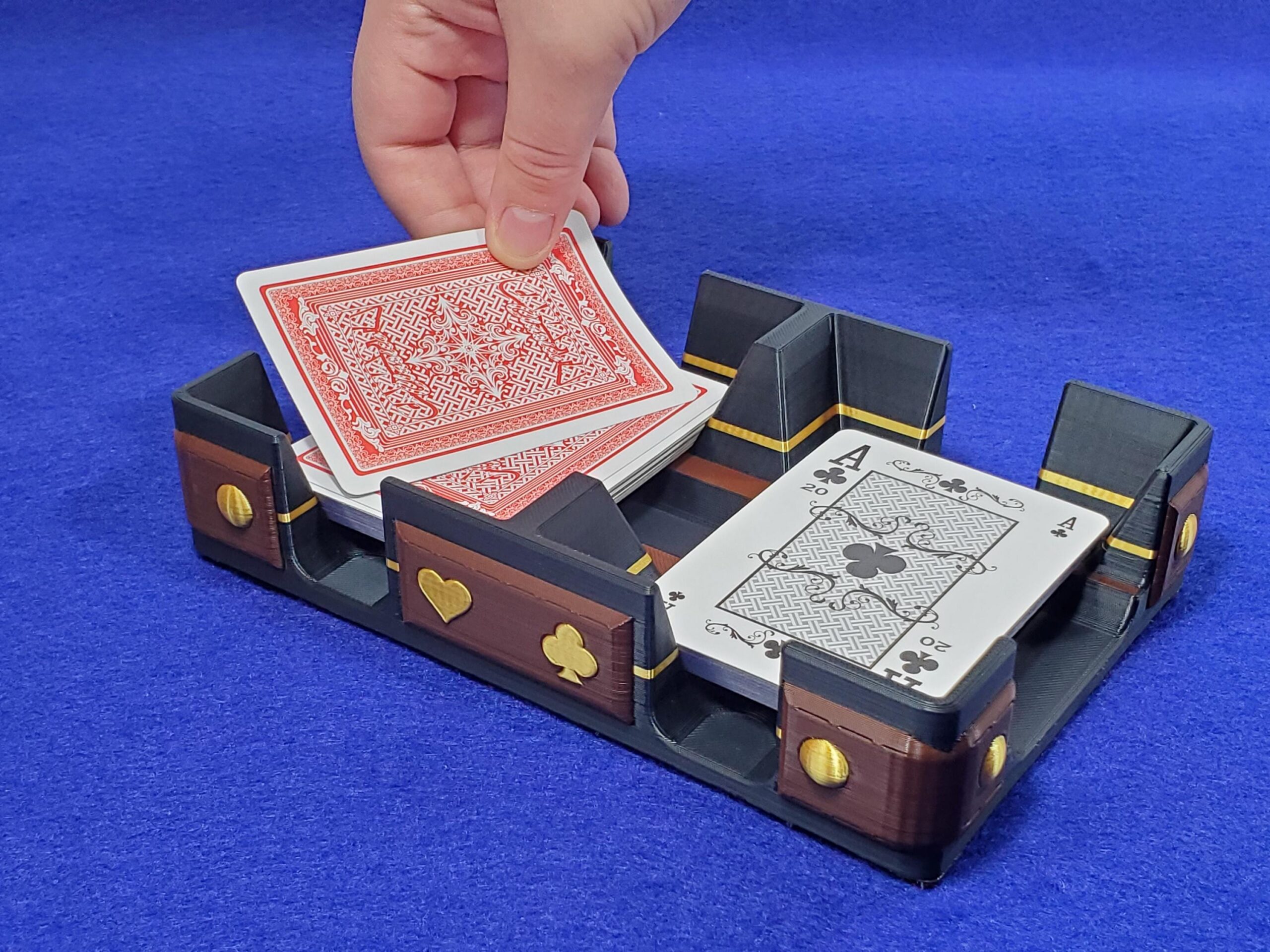CARD SIZE: Fits either poker (wide) size (2.5×3.5″) or bridge (narrow) size (2.25×3.5″) playing cards