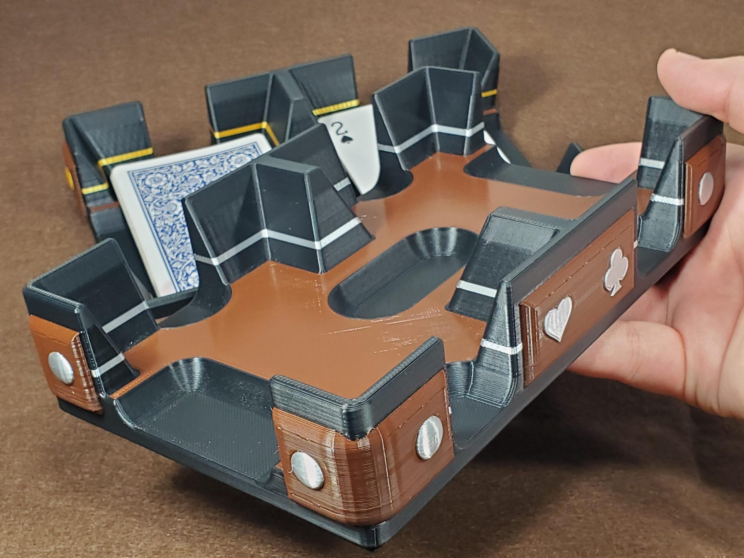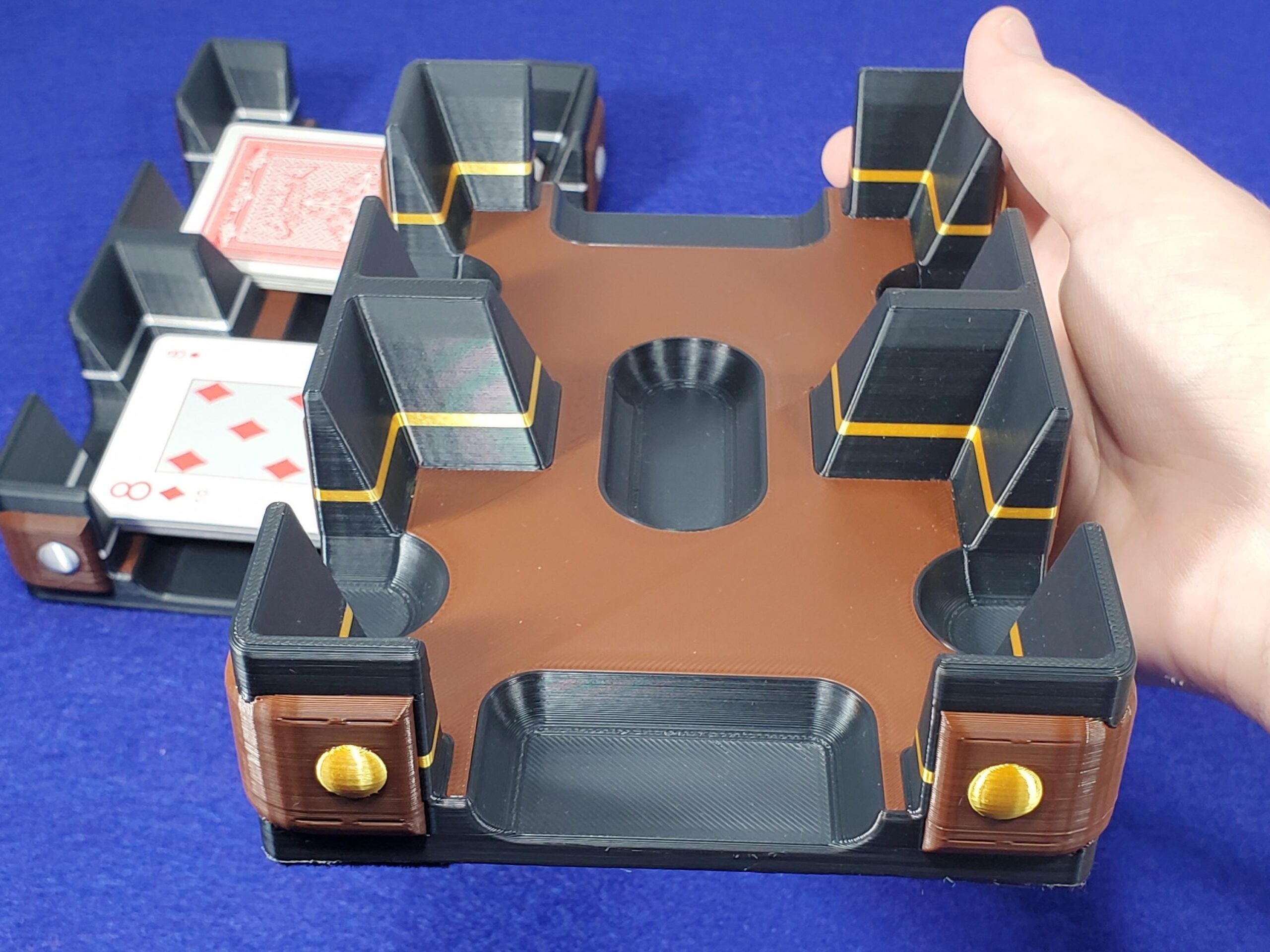 ❂ The gold or silver design and belt on each card tray give it a unique design or pattern.