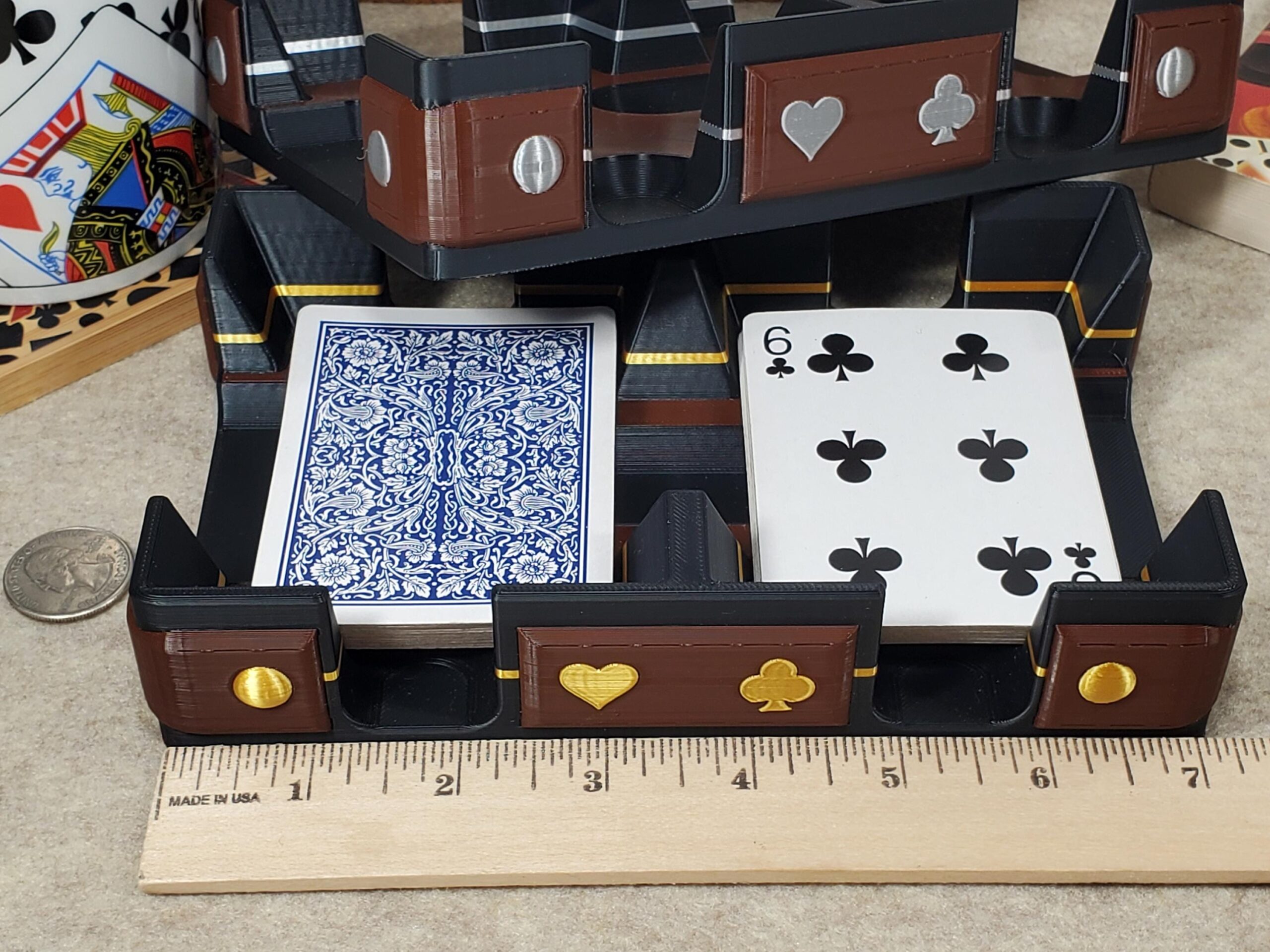 PLEASE NOTE: Playing cards, ruler and coin shown are for demonstration only and are not included with tray. Customization adds additional time to actually make your product.