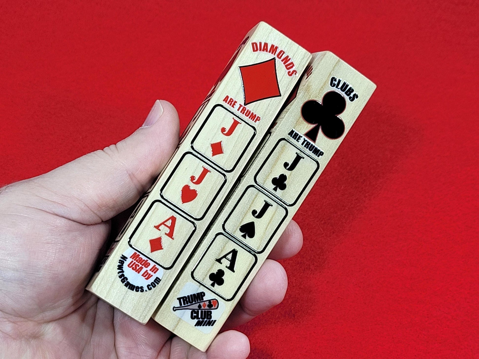 • MADE IN AMERICA QUALITY: Crafted in Circleville, Ohio, our Trump Clubs are a great gift idea that are created in small runs. They are not just for euchre players, but for any card player. Made from premium wood with clear color markings and durable craftsmanship, offering an excellent hand feel for an enhanced game experience.