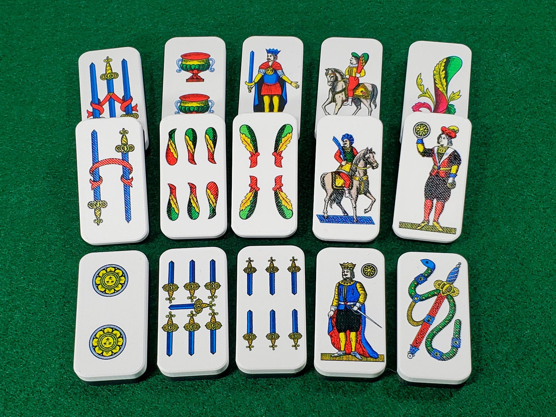 • Designed from a vintage Italian playing cards dating way back when, they look and feel vintage while they are on dominoes.